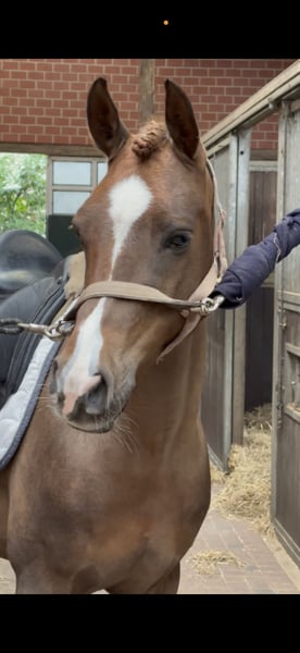Guinness is a 7-year-old former licensed stallion, now a gelding, who leaves nothing to be desired! In his youth, he achieved high placings in riding and dressage competitions and qualified for the Federal Championship. Currently competing at a very good L** level and placed up to L, he is now ready to step into Pony FEI sport. Very well-behaved in handling, good TüV, and three excellent GGA make Guinness an absolute dream pony! Videos and further information gladly available via WhatsApp at 0160 6329297.