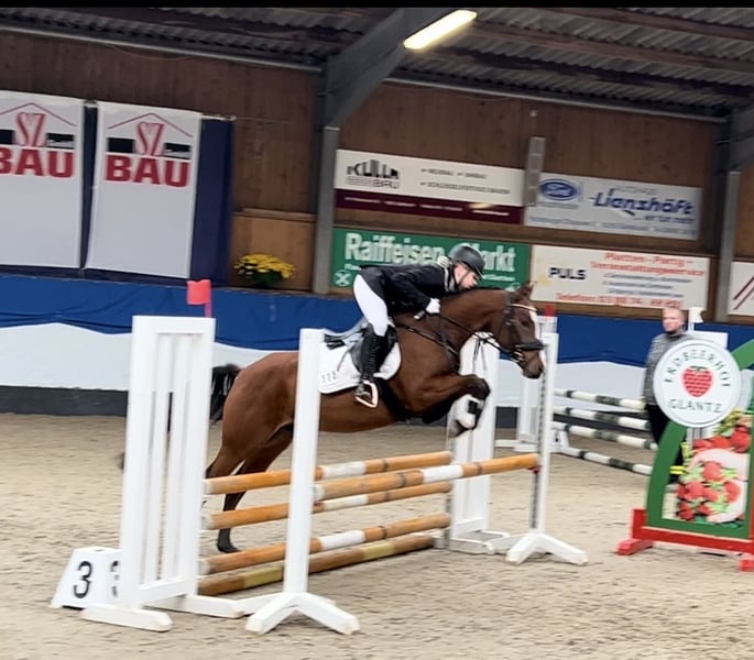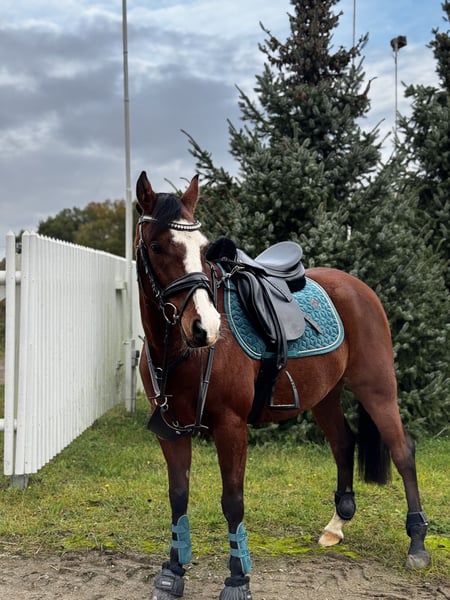 🐴 German Riding Pony, 4'9" (1.44 m), Brown 🌟 Charming all-rounder with heart and talent – German Riding Pony, 7 years old 🪻A pony like springtime – full of joie de vivre, sensitive, and ready to win hearts. • Name: Monacco • Breed: German Riding Pony • Height: 1.44 m (14.4 hh) • Color: Brown • Gender: Gelding • Age: 7 years • Stabling: Boxed, accustomed to 24/7 turnout on pasture • Training level: Dressage & jumping up to E level • Location: 23923 Ollndorf 🏇 Description We bought Monacco at age 4 for our daughter (then 10), and he has been part of our family ever since. She has grown with him, learned to ride, and has been regularly coached. Now, at 14, she has outgrown him. We have taken the step to a larger horse and realize we can no longer do him full justice as riders. It is with a heavy heart that we want to sell Monacco—to a loving home that will nurture his sensitive nature and further develop his potential. This beautiful gelding brings daily joy with his fresh, spring-like personality, his fine rideability, and his affectionate character. With a height of 1.44 m, he is ideally suited for ambitious children, teenagers, or smaller adults seeking a versatile pony. Thanks to his curious nature, he approaches new situations openly and responds delicately to his rider’s aids. He is very sensitive and quickly forms a close bond with his handler, making him a particularly trustworthy partner. Whether for dressage, jumping, or relaxed rides in the countryside—he always shows motivation, eagerness to learn, and willingness to perform. He remains calm and composed even in traffic. Due to his young age, he is eager to be further trained and developed—he has all the best prerequisites to grow under a suitable rider. In daily handling, he is a true gem: friendly and people-oriented—patient, cautious, and attentive even with children. He remains a pony—with all the charming independence that makes this wonderful breed special. A partner who impresses not only with his sporting ability but also with his heart. ✅ Special features • Three distinct gaits with active hindquarters • Well-handled—suitable even for less experienced riders • Easy to keep in open stable, box, or with 24/7 pasture turnout • Dressage & jumping at E level • Regularly vaccinated and dewormed • Farrier- and loading-friendly • Regular dental care • Regular hoof care 🎯 Areas of use • Dressage • Jumping • Leisure riding • Trail riding • Pony competitions 📩 Contact If seriously interested, we look forward to hearing from you. Our heart pony is waiting for someone who appreciates his sensitive nature and wants to explore new paths together. Viewings and trial rides can be arranged individually.