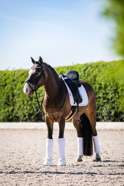 Magic Movie is an 8-year-old Westphalian pony mare (1.46 m) trained to FEI pony level. Elegant, reliable, and easy to handle – a true dream pony for a confident young rider or a small adult. She features three expressive basic gaits, a soft contact, and excellent self-carriage. Always willing to work and exceptionally well-behaved in unfamiliar environments. No stable vices, up-to-date with veterinary, dental, and farrier care. Located in Belgium – videos available upon request. 💫 Talented • Safe • Beautiful – the complete FEI pony!