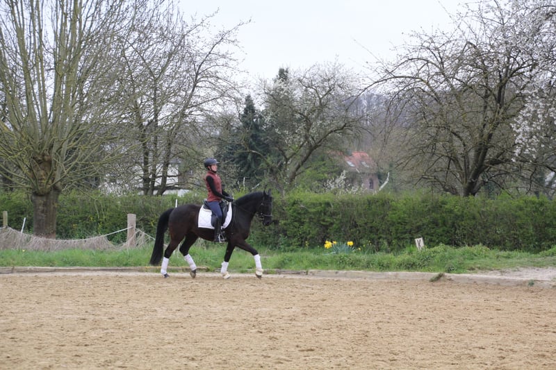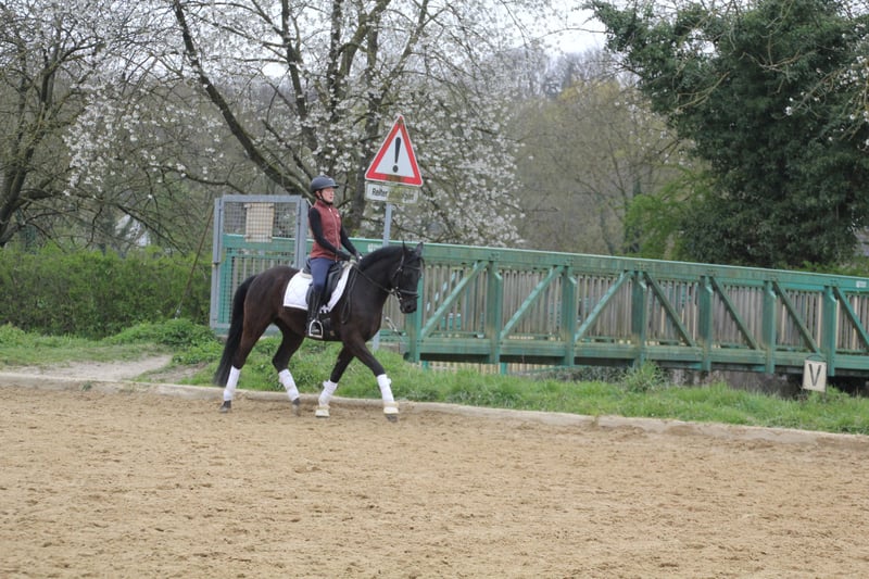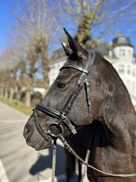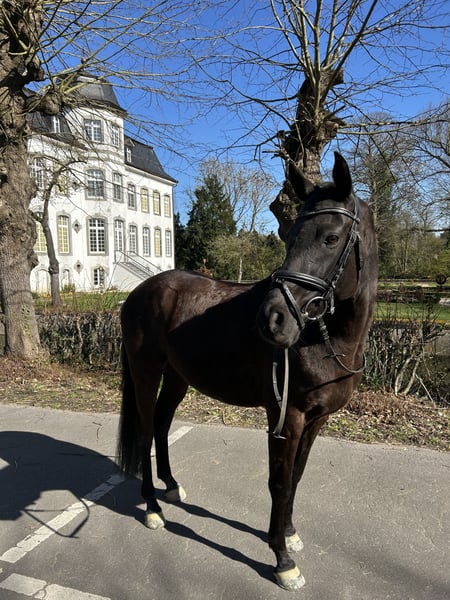 Dieser bildhübsche Rappe vom Besten G x Chardonnay (04/2018, ca.1,50m) begeistert mit seiner tollen Präsenz, drei guten Grundgangarten und Leichtigkeit im Umgang. Aktuell befindet er sich auf solidem L-Niveau und zeigt sich dabei stets lernwillig. Auch auf dem Turnier konnte er bereits Erfahrungen sammeln. Gelände kennt er ebenfalls. Aktuell ist er viermal beschlagen und von wird unserer 15jährigen Tochter geritten. Mit ihm kann man einen neuen Partner fürs reiten und für sein Herz gewinnen.