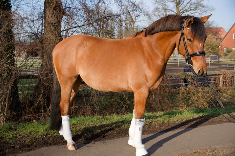 Zum Verkauf steht der ausdrucksstarke Ponywallach Morgensterns D’Artagnan, bald 8-jährig, in der besonderen Farbe Braunfalbe und mit einem Stockmaß von 1,53 m. Er vereint Qualität, Ausstrahlung und Arbeitsbereitschaft. „Darti“ wurde 3-jährig (2021) in Elmshorn als Hengst gekört, was seine hervorragenden Bewegungen, Zuchtqualität und sein fabelhaftes Exterieur unterstreicht. 5-jährig wurde er gelegt und ist im Umgang mit Stuten unkompliziert. „Darti“ ist ein Sohn des Ausnahmevererbers FS Don’t Worry, bekannt für Rittigkeit, hervorragende Grundgangarten und sportliche Leistungsbereitschaft. Seine Mutter ist FS Carmelita, eine Tochter des Elitevererbers FS Champion de Luxe, der als Bundeschampion zahlreiche gekörte Söhne, Staatsprämienstuten und sportlich erfolgreiche Nachkommen gestellt hat. Er ist Vollbruder von Steendieks Morgensterns Dalai, einem hochdekorierten Hengst mit Bundeschampionatsplatzierungen und erfolgreicher Nachzucht – ein klarer Beleg für die Qualität dieser Linie. „Darti“ verfügt über sehr gute Grundgangarten, wobei insbesondere sein hervorragender Schritt hervorzuheben ist – taktrein, raumgreifend und von hoher Qualität, auch für die weitere dressurmäßige Ausbildung. Sportlich ist er Dressurpferde-A-platziert und aktuell auf L-Niveau. Er zeigt sich motiviert, lernbereit und leistungswillig, benötigt jedoch eine sichere, erfahrene Reiterhand. Nicht für Anfänger oder ängstliche Reiter geeignet, ideal für ambitionierte NachwuchsreiterInnen oder erfahrene ReiterInnen. Im täglichen Umgang ist er brav, schmiede- und verladefromm. Er geht barhuf und ist vollständig geimpft und regelmäßig entwurmt. Eine AKU aus 2023 ohne Befund inklusive Röntgen von Beinen und Rücken liegt vor. Aktuell steht er tagsüber in einer gemischten Gruppe und ist nachts in der Box untergebracht, kennt im Sommer aber auch 24/7 Weide – sozialverträglich und Herdenhaltung gewöhnt. Ein Pony mit gekörter Qualität, XXL-Maß, besonderer Farbe, hervorragenden Grundgangarten, sportlicher Perspektive, exzellenter Abstammung und sehr gutem Gesundheitsstatus – ein echter Hingucker mit Potenzial.