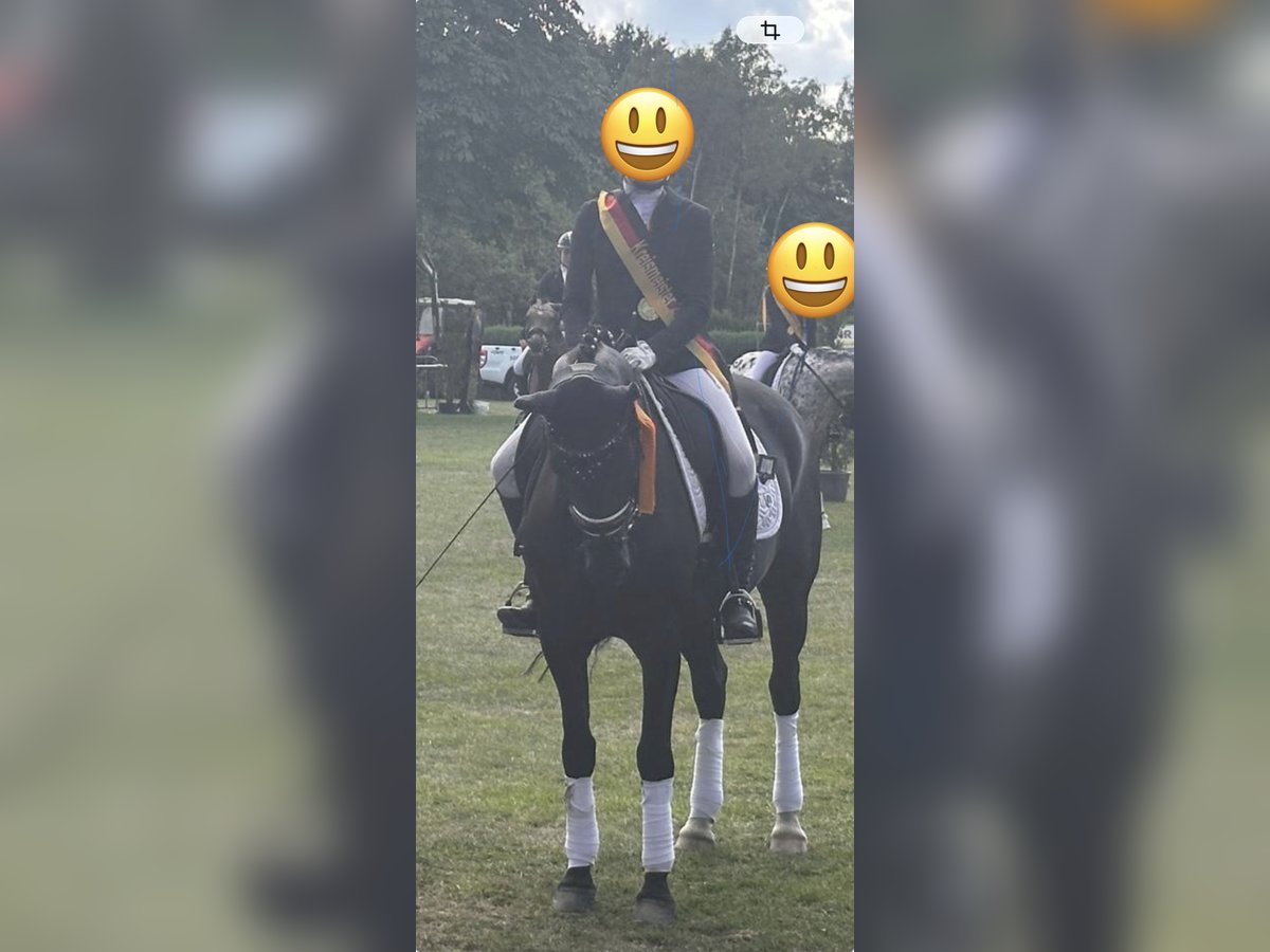 Due to a switch to a larger horse, we are selling our quality pony gelding "Dreamy" with a heavy heart. Dreamy impresses with his rideability, work ethic, and consistent willingness to perform. He has successfully competed in A- and L-level dressage tests, achieving multiple wins and placings with high scores. He shows clear potential for the FEI level. He is a reliable and well-behaved pony in lessons. My daughter regularly enjoys riding him, and he is always trustworthy. In recent months, he has also been introduced to jumping, currently confidently clearing an A-level course, demonstrating both joy and ability. He is healthy, loading well, vaccinated (including herpes). An ambitious, honest pony, ideal for talented young riders. Further information gladly via WhatsApp.