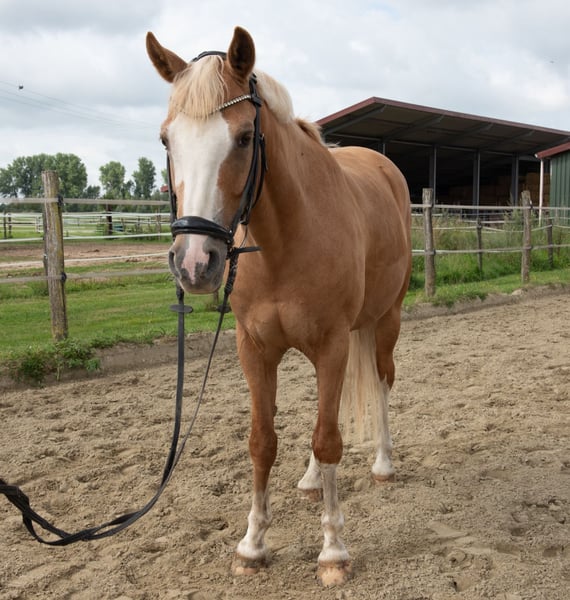 Te koop staat onze charmante rijpony-ruin. Marlo is geboren in 2017 en valt op door zijn vriendelijke aard en elegante uitstraling. Met een stokmaat van 148 cm is hij perfect voor ambitieuze ruiters die waarde hechten aan dressuurvaardigheden. Door zijn evenwichtige temperament is hij goed geschikt voor kinderen, maar hij kan ook een kleine volwassene uitstekend dragen. Hij is geschikt voor zowel ervaren ruiters als voor enthousiaste jonge ruiters die op zoek zijn naar een betrouwbare en leergierige partner. De palomino-ruin overtuigt door zijn nobele uitstraling en veelzijdige inzetmogelijkheden in de dressuuroefeningen. Hij is goed getraind en toont veelbelovende progressie voor verdere opleiding. De pony is gezond, regelmatig gevaccineerd en ontwormd. Bij interesse of voor meer informatie horen wij graag van u.
