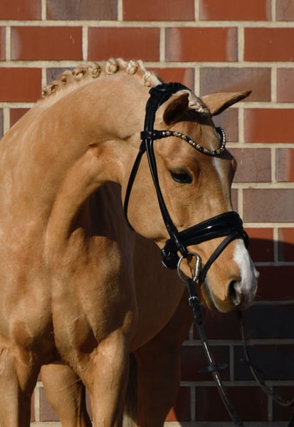Zu Verkauf steht diese bildschöne 10-jährige, 146cm große Stute von Can Dance. Crashlady überzeugt mit drei sehr guten Grundgangarten mit viel Ausdruck. Sie ist in der Dressur bis zur Klasse L ausgebildet und vorgestellt und kann zahlreiche Siege und Platzierungen mit hohen Noten bis A** vorweisen. Im Springen ist sie aktuell mit 8er Noten bis 80cm platziert, hat aber viel Potenzial für mehr und wurde bereits auf A Niveau vorgestellt. Crashi ist ein mutiges Pony mit viel sportlichem Ehrgeiz und kennt ebenso VS-Sprünge, woran sie große Freude hat. Crashi ist die optimale Partnerin für einen ambitionierten Reiter, sowohl denkbar als FEI Pony, als auch für Spring- oder VS-Reiter hochinteressant. Wunderbares potenzielles Pony für die Goldene Schärpe! Es liegen umfassende aktuelle Röntgenbilder ohne Befund vor. ‼️Bei Interesse und für Videos bitte ausschließlich telefonisch oder über WhatsApp unter 017621729218 melden. Anfragen über ebay oder ehorses werden nicht beantwortet.‼️ Das Pferd wird nicht zur Verfügung gestellt und kann auch nicht auf Raten gezahlt werden.