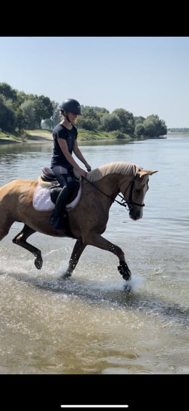 Midsummer Fly glänzt nicht nur durch ihr Aussehen, sondern auch durch ihren liebevollen Charakter. Sie ist eine zuverlässige Partnerin bei der alltäglichen Dressurarbeit, im Gelände als auch im Amateursport. Fly ist Verlade-, Schmiedefromm und auch beim Tierarzt hat sie Manieren. Sie verfügt an genug Go, wird dabei aber nie kopflos und beißen so wie steigen sind ihr fremd. Sie ist mit anderen Pferden verträglich, stand sowohl schon in der Box als auch im Offenstall. Sie konnte ihre vielseitige Einstellung schon in der Dressur, im Springen, in der Vielseitigkeit, bei Frei-, und Bodenarbeit und in der Working Equitation unter Beweis stellen. Kann auch problemlos von Kindern gehändelt und geritten werden, was sie schon beim Reitabzeichen bewiesen hat. Tolles Pferd für jeden Spaß, ob ohne Sattel reiten, Bodenarbeit machen oder am See schwimmen gehen, Fly ist überall dabei. Kein reines Anfänger und Kinderpferd. Wird nur in beste Hände abgegeben.