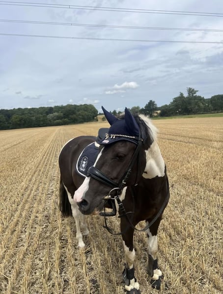 A lovely mare born in 2014, standing at 14.1 hh, is available for sale. Zelsa has a friendly, balanced temperament and consistently demonstrates reliability in daily handling. She has always been healthy with no notable issues. Zelsa is suitable for both experienced riders and beginners, as she is calm, motivated, and versatile. She works attentively and enjoys riding out, trail riding, lunging, groundwork, and other activities that challenge her mentally. In handling, she is cooperative and quickly builds trust with regular contact. She gets along with other horses to some extent; however, she generally prefers a stable with a quiet environment. We are therefore seeking a home where she can enjoy plenty of movement, turnout, and freedom. The sale is with a heavy heart, as she has become too small for her current rider. The complete tack – including jumping and dressage saddle, bridle, leg protection, saddle pads, and other accessories – is included in the price. For further inquiries or questions, please contact us at 0177 1831455.
