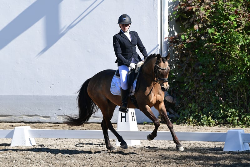 Wir haben uns entschieden unser 14 jähriges erfolgreiches Dressurpony von FS Champion de Luxe in ein 5⭐️Zuhause zu verkaufen, da Ponys leider nicht mitwachsen. Die hübsche Reitponystute in Sonderfarbe war bis 2020 in der Zucht. Seit 2021- bis heute ist Coco de Luxe erfolgreich im Dressursport unterwegs. Siegreich🏆in der Klasse A** und L** , LM platziert. Dressur Landeschampion 2023. Kann mit Trense und Kandare geritten werden. FEI Pass vorhanden und eingemessen. Ein Pony zum sofort in Dressursport durchzustarten. Natürlich regelmäßig geimpft und entwurmt. Voll beschlagen. Lässt sich problemlos verladen. Geht gerne, auch alleine ins Gelände. Absolut fein im Umgang und beim Reiten. Kennt Herdenhaltung. Sie ist 145cm groß und deckt gut ab.