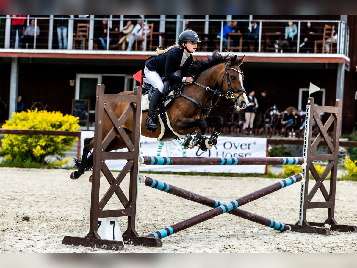 jument, DRP (Poney Allemand de Selle), née en 2010, 138 cm. Szczera, sautant tout, précise, ne s’arrête pas et ne s’affaisse pas, aide en parcours, saute de toutes les positions, rapide lorsque nécessaire, poney allant de l’avant, en compétition 90–95/100–105 cm (finale DIM D-bis gagnée en janvier 2026), en entraînement à la maison parcours jusqu’à 110 cm, très bonnes notes en concours pour le style du cavalier, avec un bon tempérament. En entraînement régulier et en excellente forme, en paddock, ferrée aux antérieurs, sous la surveillance constante d’un vétérinaire, d’un dentiste et d’un physiothérapeute. Aime le contact avec l’humain. Très amicale. Poney ayant une déficience visuelle d’un œil depuis plusieurs années – cela ne lui pose aucun problème, comme en témoignent ses résultats en compétition. Elle n’a pas peur du bruit, est facile lors des soins quotidiens, tonte, ferrure, visites vétérinaires, transport, et reste calme en compétition. Toujours placée en haut du classement lors des compétitions nationales DIM, Victoire dans des événements de championnat, notamment : * 1ère place – Championne de Pologne groupe C, 2026 (HPP, Leszno) * 2ème place – Vice-Championne de Pologne groupe C, 2025 (Jakubowice) * 2ème place – Vice-Championne de Pologne groupe C, 2024 (Jakubowice) * 1ère place – Championne par équipe de Pologne pour poneys, 2025 (Jakubowice) * 1ère place – Championne de Varsovie et de la Mazovie groupe C, 2025 * 3ème place – Vice-Championne de Varsovie et de la Mazovie groupe C, 2026 * 4ème place – OOM – poneys 2025 (Baborówko)