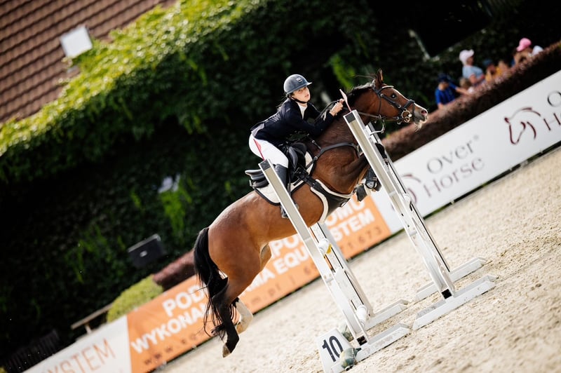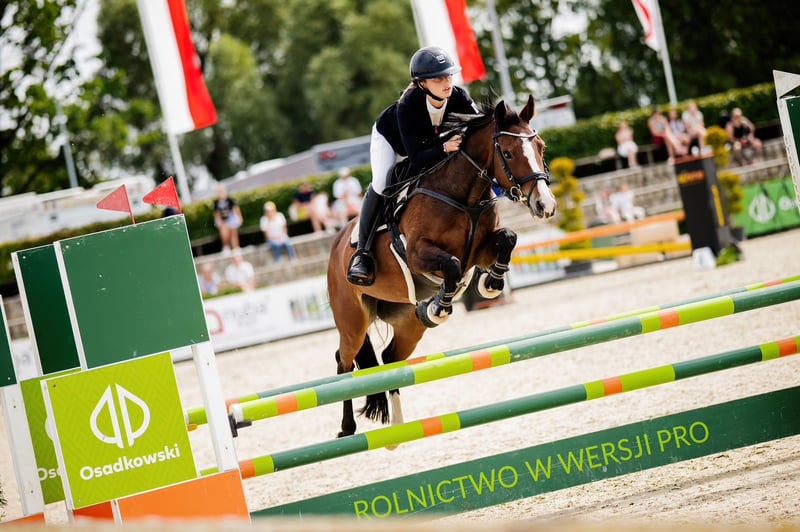 Yegua, DRP (Pony de doma alemana), 2010, 138 cm. Sincera, saltadora, muy precisa, no se detiene ni se deja llevar, ayuda en el recorrido de salto, salta desde cualquier posición, rápida cuando es necesario, pony con carácter de avance, compite en obstáculos de 90–95/100–105 cm (finales de enero de 2026, ganadora del final DIM D-bis), en casa en recorridos de 110 cm, con excelentes resultados en concursos por estilo de jinete, con buena cabeza. En entrenamiento regular y en muy buena forma, en paddock, con herraduras en las patas delanteras, bajo cuidado constante de veterinario, dentista y fisioterapeuta. Le gusta el contacto con las personas. Es muy amigable. Desde hace muchos años, tiene una visión reducida en un ojo, lo cual no le impide nada, como lo confirman sus resultados en competición. No tiene miedo a los ruidos, es fácil de manejar en los cuidados diarios, en el esquilado, herrado, visitas al veterinario, y en el transporte. Tranquila en competición. Siempre obtiene lugares destacados en concursos nacionales DIM, Ganadora en eventos de campeonato, entre otros: * 1º lugar - Campeona de Polonia categoría C, 2026 (HPP, Leszno) * 2º lugar – Vicecampeona de Polonia categoría C, 2025 (Jakubowice) * 2º lugar – Vicecampeona de Polonia categoría C, 2024 (Jakubowice) * 1º lugar – Campeona por equipos de Polonia para ponis, 2025 (Jakubowice) * 1º lugar – Campeona de Varsovia y Mazovia categoría C, 2025 * 3º lugar – Vicecampeona de Varsovia y Mazovia categoría C, 2026 * 4º lugar – OOM – ponis 2025 (Baborówko)