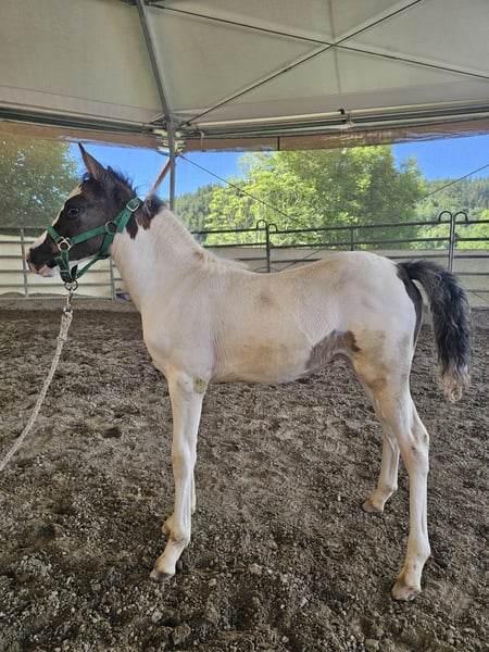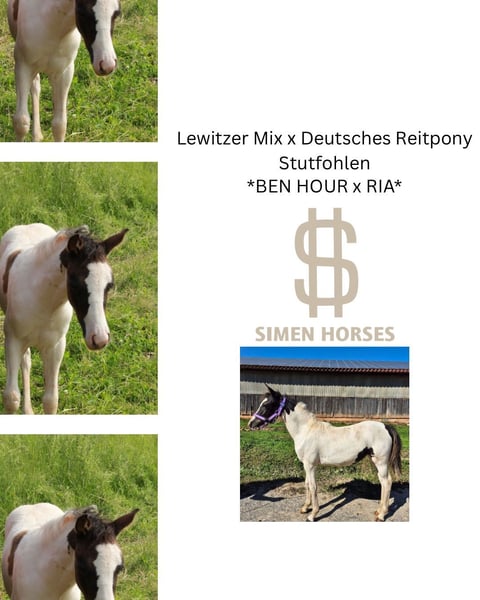 Pretty, very calm filly. Suitable for leisure riders. Family horse. Learns the basics of foal education until weaning. Grows up healthy on our large Black Forest pastures, in a herd environment. - Good conformation - Kind character - Easy to handle - Papers with ZfdP are applied for Mother: Ria (Pony without pedigree) Father: Ben Hour (Lewitzer mix, see stallion advertisement) **Entering the yard and pastures of the establishment for viewings as well as riding sale horses is always at your own risk! Exclusion of any warranty! We charge €50 for trial rides of our sale horses. This amount will be deducted when purchasing a horse.**