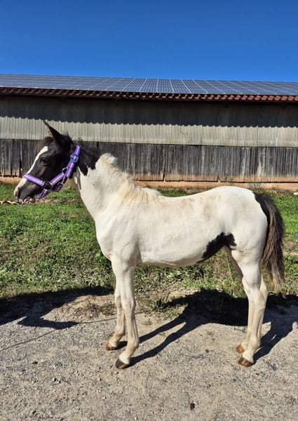 Lewitzer Mix x dt. Reitpony, braves Stutfohlen, schwarz-weiß