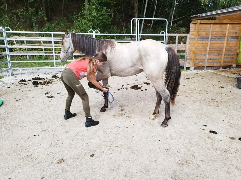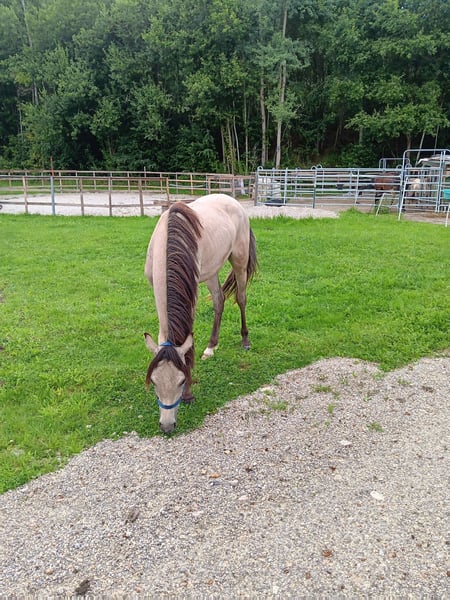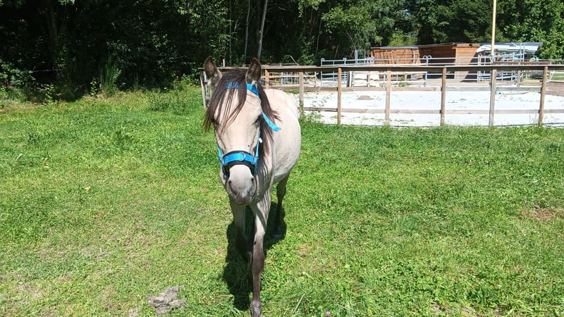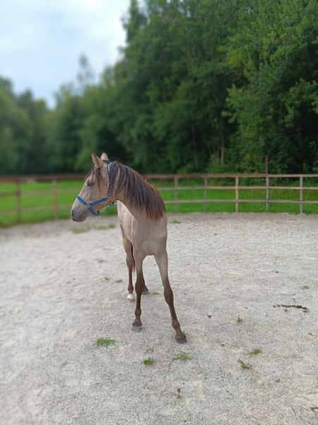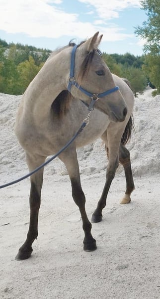 Deutsches Reitpony – Stute, Buckskin, 1 Jahr Zum Verkauf steht eine 1,5 jährige Deutsche Reitpony-Stute in der besonderen Farbe Buckskin. Abstammung: Mutter Schimmel, Vater Buckskin Besonderheit: Prämien-Fohlen Charakter: brav, lässt sich gut führen Eine schöne Nachwuchsstute mit solider Grundlage und ansprechender Ausstrahlung.