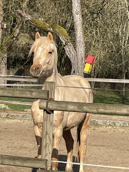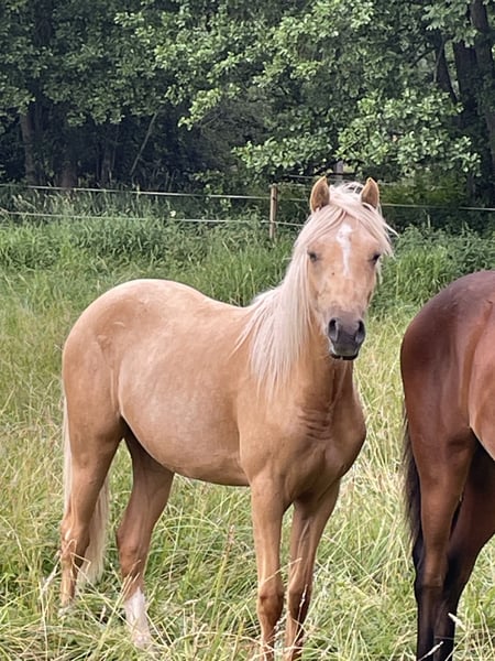 Unsere Blondie sucht DEN einen Bestplatz. Blondie ist ein Dt. Reitpony mit voller Abstammung. Sie ist am 15.03.24 geboren und derzeit 1,40m groß. Sie hat ein Herz aus Gold und ist sehr menschenbezogen und neugierig. Wir können sie uns gut als Kinderpony vorstellen weil sie jeden Quatsch mitmacht und weil sie einfach immer ruhig und gelassen ist und absolut nichts schlechtes an sich hat. Sie ist bei uns geboren und mit Kindern, Traktoren, allen erdenklichen Tieren aufgewachsen und genießt ihre Jugend aktuell mit 3 Fohlen und einer Stute. Zu den Fohlen ist sie ungemein sozial und spielt mit ihnen. Ihre Mutter war schon ein Top Kinderpony. Sie hat zahlreiche Siege mit besonders kleinen Kindern mit nach Hause gebracht. Dressur, Springen, Vielseitigkeit. Wir denken und hoffen, dass sie genau so ein perfektes Kinderpony wie ihre Mutter wird und damit jemanden richtig glücklich macht. Natürlich auch für die Zucht interessant. Natürlich beherrscht sie alles was sie in diesem Alter können muss: führen, putzen, Hufschmied und verladen. Wir wünschen uns für sie DEN perfekten Platz mit Familienanschluss und Liebe zu ihr.