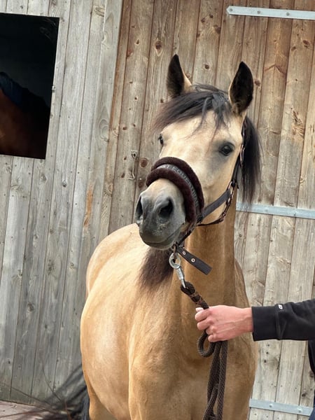 DINA FLEUR, un pony da sogno per allevamento e sport. Dina Fleur è nata nel 2023. Questa bellissima cavalla baio-isabella, figlia di Dating x Vincent, colpisce per la sua presenza espressiva e per la qualità dei suoi movimenti. È nata da noi ed è cresciuta in un branco multigenerazionale. È addestrata al guinzaglio, ben educata e offre semplicemente divertimento. Ideale per cavalieri che cercano un giovane pony di taglia finale (attualmente 1,45 m) con prospettive, sia per lo sport che per l'allevamento. Proviene da un ceppo di pony di grande successo, che vanta numerosi stalloni approvati fino al Bundeschampion. Per ulteriori informazioni o per manifestare interesse, siamo a vostra disposizione.