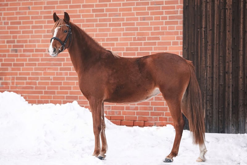 Directly from the breeder and for sale only due to breeding retirement. Filly *2023, chestnut with a light mane and tail Sire: Champ de Luxe (successfully competed up to L-level dressage and M*-show jumping, often placing among the top competitors against full-sized horses) Dam's Sire: Don’t Worry Be Happy (successful up to S-level dressage) Championess AK, affectionately known as “Nessi,” has three very good basic gaits and a very loving personality. She is very attentive to humans and loves cuddling. Currently overbuilt at approximately 1.45 m but will stay within standard height. Regularly seen by the farrier, already vaccinated against influenza, tetanus, and West Nile Virus. Awarded premium foal status and participated in the State Foal Championships in Steyerberg 2023, where she achieved second place in her class with excellent scores. Through her dam line, she is also a Welsh part-bred and placed second in her regional show class at the Hannover Regional Show in 2025. She already knows the bridle, leading, lunging with surcingle, and basic longeing/double longeing. She is being gently broken in and will be saddle-trained by summer. Price will increase with further training. If you are looking for a young pony with an honest character for both disciplines or for eventing, Nessi is the right choice. She wants to do everything right and is seeking her new partner for life who will introduce her to work with calmness and patience. Price: €7,000 Location: 31191 Serious inquiries are welcome via message. More information, videos, and photos can be provided upon request.