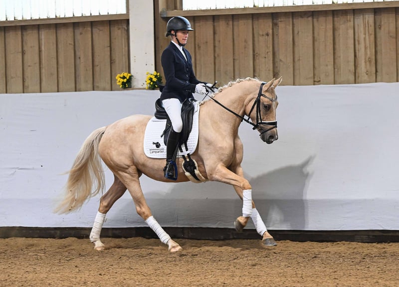 Hier geht's zur Kollektion und Online-Registrierung: https://auktion.pzvbw.de/auctions MwSt. 19% Hochsympathische Ponystute vom 3-fachen Bundeschampion DSP Cosmo Royal. Reiterlich schon weit gefördert und charakterlich gefestigt, so dass sie als Familienpony geeignet ist. Mehrfach hochplatziert in Reitpferdeprüfungen. A very likeable pony mare by three-time German Champion DSP Cosmo Royal. She has already received extensive training and a well-developed character, making her a perfect family pony. She has placed highly in several young horse riding classes.
