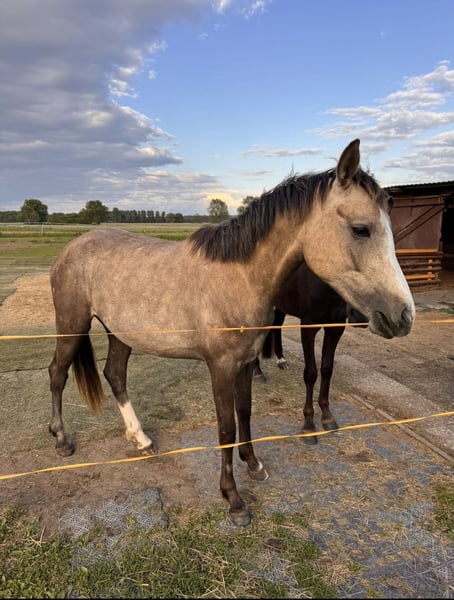 Verkaufe deutsche Reitpony-Stute, geboren 2023. Die elegante und talentierte Jungstute ist ideal für den Dressursport und überzeugt durch ihre angenehme Charaktereigenschaft Perfekt für ambitionierte Reiter, die ein vielversprechendes Nachwuchstalent suchen. Sie ist mit gleichaltrigen Ponys in Offenstallhaltung aufgewachsen und steht aktuell in einer gemischten Herde im Offenstall. Tägliches Hufe geben, putzen, sowie verladen ist für sie kein Problem. Sie ist dabei immer brav. Selbstverständlich wird sie regelmäßig entwurmt, geimpft und dem Hufschmied vorgestellt. Als Fohlen prämiert. Sie wird nur in ein liebevolles und förderndes 5 Sterne Zuhause verkauft. Die letzten Bilder sind von den Eltern. Bei Interesse stehe ich gerne für weitere Informationen und eine Besichtigung zur Verfügung.