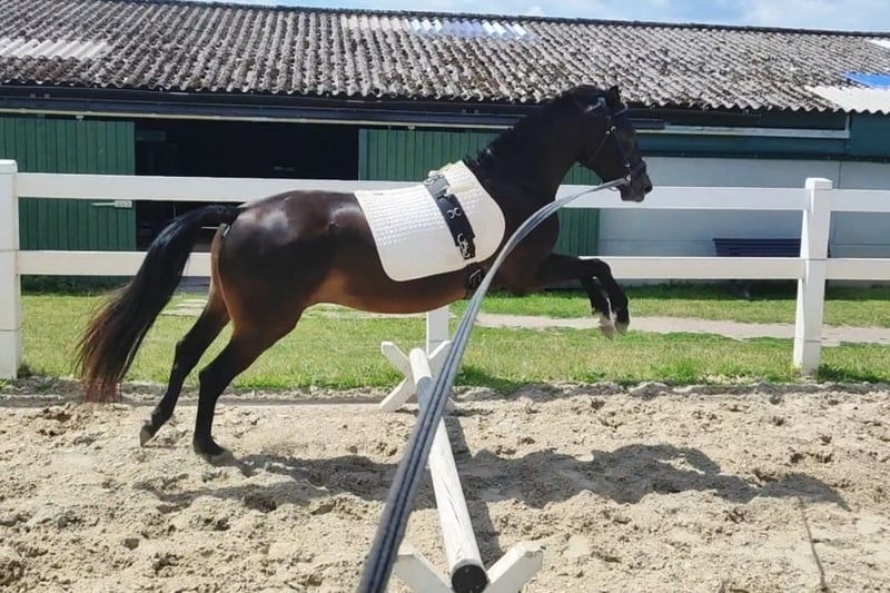 Miss Marpel ist eine typvolle 3-jährige deutsche Reitponystute mit einem kompaktem Körperbau und einem ausgeglichenem Wesen. Sie besitzt drei sehr gute Grundgangarten und ist zur Zeit 144 cm groß. Sie überzeugt nicht nur optisch, sondern vor allem durch ihren Charakter. Miss Marpel ist stets freundlich, nervenstark und neugierig. Im täglichem Umgang ist sie sehr lieb, unkompliziert, klar im Kopf und absolut kinderfreundlich. Sie kennt das putzen, alle 4 Hufe heben und die Bodenarbeit. Miss Marpel wird gerade behutsam an die Longenarbeit heran geführt. Sie lernt sehr schnell, ist dabei fleißig und entspannt. Ihre große Leidenschaft ist das Springen. Ihr kann kein Cavaletti zu hoch sein. Daher ist sie bestens für den Spring- und Vielseitigkeitssport geeignet. Sie bringt den Mut und das Vermögen mit. Miss Marpel stammt von dem Vielseitigkeitshengst MC Fly High D (Mr. Hale Bob x Principal's Ass) aus unserer Hauptstutbuch Stute Holly Go lightly (Henry x Balthasar) ab. Ihre Halbschwester Arika (von uns gezogen und in Rimondo unter Arika 9 zu finden) ist eines als der erfolgreichsten Ponys in NRW unterwegs. Leider hat Miss Marpel dieses Frühjahr ein Sommerekzem entwickelt und wird deshalb weit unter Wert verkauft. Bei Interesse freue ich mich über einen Anruf oder eine Nachricht. Gerne nehme ich mir Zeit für ein Gespräch oder eine individuelle Vorstellung vor Ort. Das erste Video ist aktuell. Das zweite Video ist von Ende September 2024.