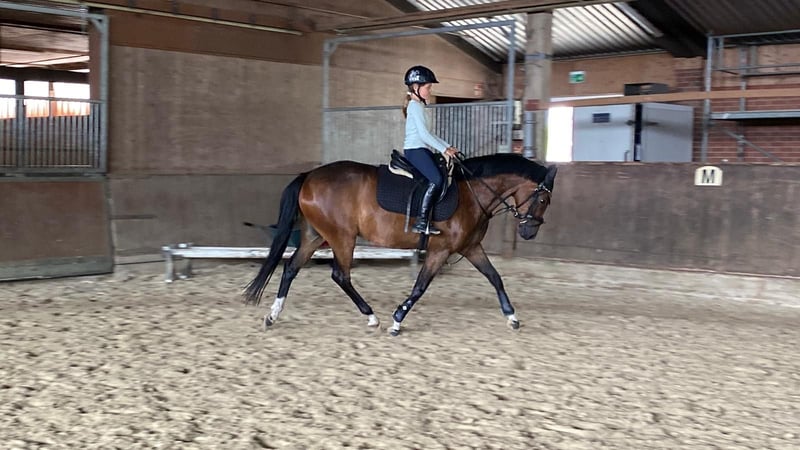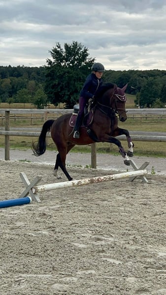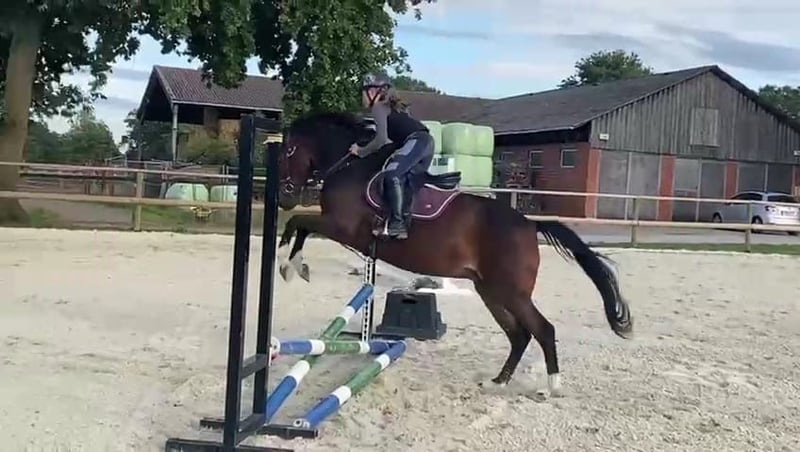 Direkt vom Züchter! Diese sehr elegante Stute im idealen Ponymaß ist bereit für neue Herausforderungen! Lady ist bei uns aufgewachsen und wurde dreijährig kurz angeritten. Im Winter hat sie wie bei uns üblich noch mal eine Auszeit genießen können, bevor sie seit Mai wieder gearbeitet wird. Sie hat drei sehr schöne Grundgangarten und zeigt auch viel Spaß und Engagement bei den ersten kleinen Sprüngen unter dem Sattel. Beim Freispringen ist ihr Vermögen und die sehr gute Manier schon zu erkennen. Lady lässt sich super auch von jungen Reitern auf dem Viereck und auch im Gelände reiten. Sie wird abwechslungsreich gearbeitet. Bodenarbeit, Dressur, Springen oder Gelände, mit ihr hat ein junger Reiter viel Spaß! Natürlich ist sie in dem Alter noch nicht in gefestigt, aber mit Unterstützung von unten steht den Turnieren ab 2026 nichts entgegen. Wir wünschen uns für sie eine tolle Familie, die ihre liebe Art zu schätzen weiß. Ihre Geschwister sind im Sport bis FEI, S-Dressur, L-Springen und auch im Fahrsport sehr erfolgreich. Im Mutterstamm finden sich auch Bundeschampions in der Vielseitigkeit. Ihr stehen ebenfalls alle Sparten offen.