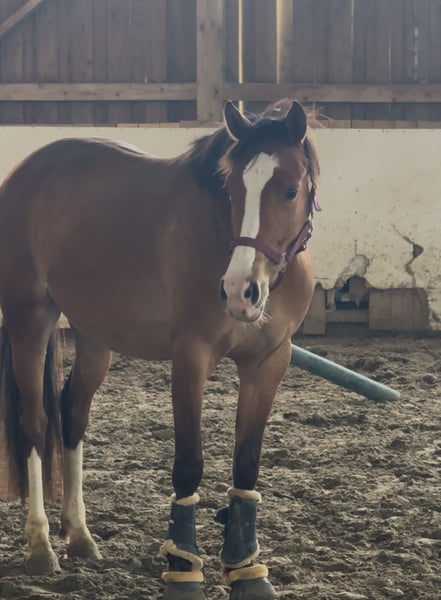 Te koop of beschikbaar Ik verkoop mijn 3-jarige merrie Cirada S, van hengst Cayuga San, uit de Calvins la vie est belle (Calvin Klein x Danny Gold). Ze heeft geweldige drie gangen, de draf springt eruit. Ze heeft haar merrieleistungsprüfung afgerond met een 8,00. Ze is braaf in de omgang en is sinds haar eerste dag bij ons gewend aan kinderen/tractoren/honden. Met verdere opleiding zal ze een geweldig kinderpony worden. Mijn 10-jarige dochter heeft ook al op haar gereden. Graag in goede handen. Bij interesse graag een privébericht. Prijs 10-15.000€ bespreekbaar.