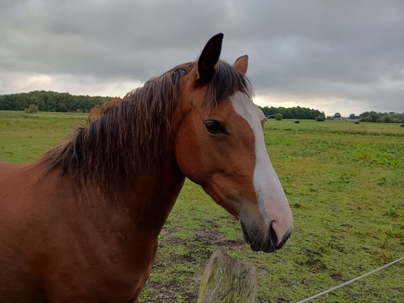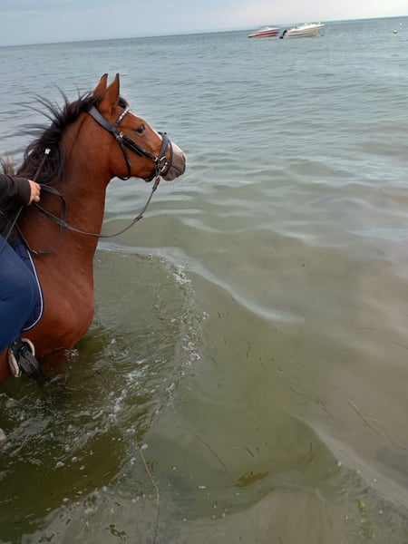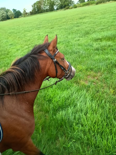 Wir bieten unsere 4 jährige Endmaßpony Stute zum Verkauf an, da sie leider mit 147 cm zu klein für uns geblieben ist. Seit Dezember letzten Jahres wird sie von einem 13 jährigen Mädchen geritten. Mia ist immer motiviert und lernt sehr schnell. Sie kann entspannt alleine ins Gelände, auch Straßenverkehr macht ihr keine Sorgen. Ob Busse, Trecker, Fahrradfahrer, Kühe und Hunde, sie ist gelassen und vertraut ihrem Reiter. Auch Bodenarbeit und Tricks lernen findet sie toll. Sie kennt Longe und Doppellonge. Wir waren auch schon im Reiterpark mit Mia und haben dort kleinere Sprünge mit ihr gemacht. Auch dort zeigte sie sich motiviert aber entspannt. Mia ist in allen Bereichen immer brav im Umgang und selbst von fremden Kindern führbar. Daher denken wir trotz ihres Jungen alters ist sie durchaus auch für Kinder interessant. Ebenso können wir sie uns auch für ambitionierte Turnierreiter vorstellen. Sie liebt es gekuschelt und betüddelt zu werden. Menschliche Zuwendung ist ihr wichtiger als andere Pferde. Sie ist mit fremden Pferden eher unsicher, daher wäre uns wichtig, dass Mia in eine ruhige, kleine, reine Stutenherde ziehen kann. Zwei "Schönheitsfehler" hat Mia. Sie hat vorne einen leichten Bockhuf, der ihr aber keine Probleme bereitet und als Fohlen korrigiert wurde. Und sie hakt manchmal aus der Ruhe heraus mit ihrem Hinterbein. Das zeigt sich nur wenn sie länger stand, also über Nacht z.b.. unterm Reiter hat sie keine Probleme, auch nicht in Wendungen. Unsere Osteopathin sagt, dass sie keine Schmerzen hat, aber was genau es ist können nicht sagen. Selbstverständlich ist Mia darüber hinaus gesund, geimpft, entwurmt, regelmäßig beim Hufschmied und ihre Zähne wurden auch kontrolliert. Bei Interesse bin ich telefonisch vormittags bis ca 13 Uhr am besten zu erreichen.