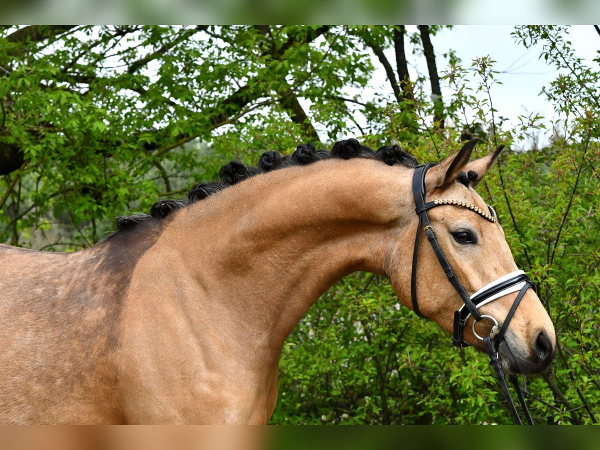 "Glory" arrive directement de l’élevage avec une inspection récente – une jument très douce avec une belle apparence. Bien qu’elle soit encore au début de sa formation, elle se distingue déjà par son tempérament facile. Ses bonnes allures de base laissent envisager un avenir prometteur en dressage – avec une formation supplémentaire, elle sera sûrement adaptée plus tard en tant que poney pour enfants. Un certificat vétérinaire très satisfaisant, incluant le dos et le cou (sans anomalies), est bien entendu disponible. Venez la voir et tomber sous son charme !