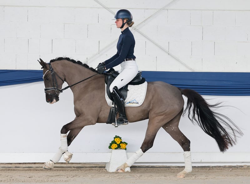 Our collection features a carefully selected range of riding ponies suitable for all disciplines: training, breeding, and children’s ponies. You can view the entire collection here: https://ponyforum.auction The four-year-old black mare Cara Mia is a daughter of the Vice-Champion FS Clarimo, who has competed successfully up to FEI level. She was backed last year and completed her mare performance test in Münster, where the judges already praised her excellent rideability and well-balanced basic gaits. Cara Mia had a longer break and was only recently brought back into work with us – and we are absolutely delighted with her work attitude and rideability! She works very focused and balanced under saddle, already showing excellent self-carriage and responding beautifully to the rider’s aids. Her development in such a short time is remarkable; once properly trained and strengthened, this pony will fill any dressage arena with her presence! She has a lovely, light-footed gait and a good basic rhythm. A highly interesting dressage prospect pony – striking in appearance and quality! Directly from the breeder.