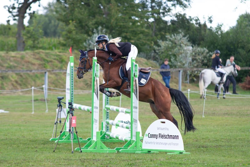 **Sales Advertisement: German Riding Pony Mare** For sale is a charming mare, a German Riding Pony, born in 2020. With a height of 138 cm, she is ideal for young riders and offers great potential for various disciplines. The mare is bay and is in excellent health. She has already gained some experience in jumping and shows a lot of talent and enthusiasm for this discipline. Her friendly and curious nature makes her an ideal partner for riders who enjoy training and shared experiences. She is well-mannered, well-trained, and ready to start her journey with her new rider. If you are interested or have any further questions, please feel free to contact me. Also see YouTube video! Take a look at this wonderful horse and see for yourself her potential!