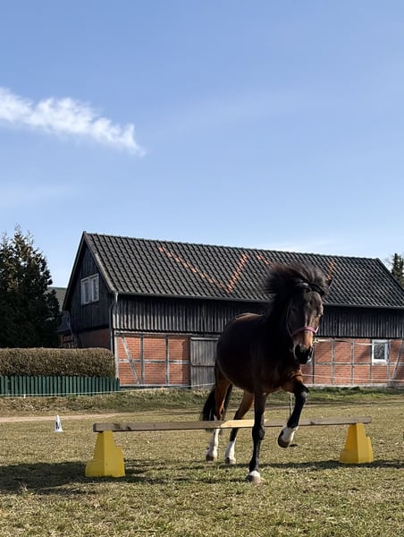 Sally im Pass Zilly ist ein junges engagiertes Pony mit einem Stockmaß von ca. 1,39 m und einem Alter von 5 Jahren. Sie kam Anfang 2025 zu uns und wurde seitdem liebevoll fair und strukturiert ausgebildet. Ihre Ausbildung orientiert sich am Natural Horsing Basistraining mit Fokus auf klare Kommunikation Vertrauen Motivation und sinnvoller Bewegung. Diese Arbeitsweise kennt sie sehr gut und reagiert zuverlässig darauf. Sally ist gesund munter und ohne bekannte Einschränkungen. Aktuell arbeiten wir am gezielten Muskelaufbau und sie wird immer mehr geritten (ca.2 x die Woche), außerdem läuft sie mindestens 1x die Woche in der Reitpädagogik mit. Typ und Charakter: Sally ist ein sportliches intelligentes und sehr liebes Pony mit viel Ausdruck. Sie ist aktiv denkt mit und zeigt große Freude an sinnvoller Beschäftigung besonders in der Freiarbeit. Sie bringt Sensibilität und Energie mit und sucht daher einen ruhigen klaren und souveränen Menschen der sie fair begleitet und ihr Sicherheit gibt. Ausbildung und Umgang: • gut führbar und regulierbar am lockeren Seil • motiviert und fein in der Bodenarbeit • sehr freudig in der Freiarbeit • sicher in allen Gangarten am Fahrrad • verlässlich beim Verladen • unkompliziert beim Hufbearbeiter • Reitergewicht und Umgang mit und von Kindern gewohnt • kennt Sattel beziehungsweise Reitpad sowie Trense mit Gebiss. • geländesicher und als Handpferd mitlaufend Aktuell steht sie im Offenstall in einer Stutengruppe zuvor auch in gemischter Herde. Genetik: Für Sally liegt eine genetische Rassenanalyse aus einem zertifizierten Labor vor tierärztlich begleitet. Genetisch vereint sie überwiegend nordeuropäische Ponylinien mit Anteilen von Cobs und UK Draft Horses iberischen Rassen sowie einem kleinen Anteil Englisches Vollblut. Die größte genetische Übereinstimmung zeigt sie mit • Shetlandpony • Norwegischem Fjordpferd • Islandpferd • Amerikanischem Miniaturpferd Diese Kombination spiegelt sich in ihrem robusten sportlichen Typ sowie in ihrer Arbeitsfreude wider. Wunschzuhause: Sally wird nicht aus der Not verkauft. Gesucht wird ein langfristiges passendes Zuhause bei einem fairen und ambitionierten Pferdemenschen der Freude an einem motivierten fein ausgebildeten Pony hat. 5⭐️ Zuhause steht klar vor dem Preis. Ein Kennenlernen ist nach Absprache jederzeit möglich. Bei Bedarf unterstützen wir gerne weiterhin begleitend in der Ausbildung um einen harmonischen Übergang zu ermöglichen.