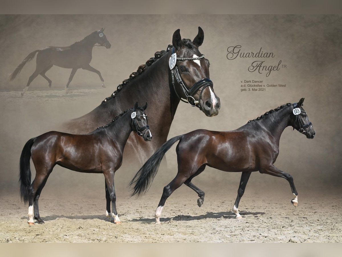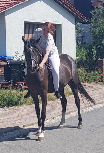 Unique opportunity: Due to a change in breeding focus, we are offering this exquisite broodmare for sale. Angel was in professional training for six months and has since been used exclusively for breeding. She placed 3rd at the Elite Mare Show and was the winner of the SLP mare class, impressing especially in jumping and rideability. She has a very promising black colt by the stallion PH No Problem at her feet and is currently pregnant by him again. Angel is being offered solely due to lack of a rider and a shift in breeding plans. She could certainly make a very good riding pony once re-trained. A sale including the foal is possible immediately, and the return of the foal could also be considered. Her color is Smokey Black, which could not be selected.