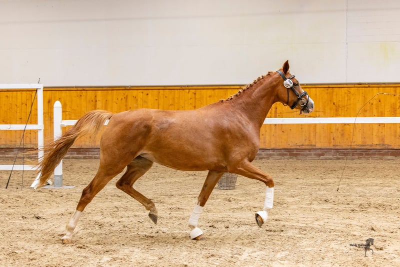 Te koop staat een betoverende 5-jarige Duitse Reitponyhengst met uitstekende afstamming (Nilantshove's Zippo × Flipper D E'lle). Dit pony meet momenteel 148 cm en toont potentieel als springpony. Op slechts vijf jaar oud laat ze al zien dat ze geschikt is als toekomstig kinderpony. Zowel bij het hoefsmid als bij het laden is ze volkomen braaf en onbevreesd. Haar kwaliteiten als fokmerrie worden onderstreept door haar nominatie voor de Verbandsprämie en het succesvol afleggen van de merrietest, wat haar potentieel en kwaliteit bevestigt. Röntgenfoto’s zijn zonder afwijkingen beschikbaar. We zoeken voor dit bijzondere pony een liefdevol en stimulerend thuis. Video beschikbaar!