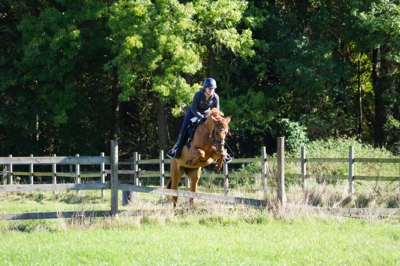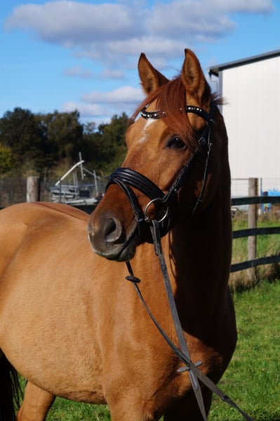 Zum Verkauf steht eine 5-jährige Deutsche Reitponystute mit ca. 1,48 m Stockmaß direkt vom Züchter. Sie ist ein Fuchsfalbe mit Aalstrich. Durch ihre kompakte Statur deckt sie auch größere Reiter gut ab. Die Stute ist altersentsprechend ausgebildet und überzeugt mit Talent, Vermögen und der richtigen Einstellung am Sprung. Sie will immer über den Sprung, zeigt dabei Übersicht und Freude an der Arbeit. Da sie extrem unerschrocken ist, ist sie besonders für den Vielseitigkeitssport prädestiniert, eignet sich aber ebenso für den Springsport. Im Gelände zeigt sie sich nervenstark, mutig und zuverlässig, geht auch allein problemlos ins Gelände. Sie ist verlade- und schmiedefromm sowie unkompliziert im täglichen Umgang. Sie kennt Hunde, Trecker, kleine Kinder und alles was laut und wuselig ist. Dabei lässt sie sich nie aus der Ruhe bringen. Diese Stute bringt alles mit, was man sich für ein Sportpony wünschen kann – ein echtes Schleifenpony in der Mache! Ein Pony mit viel Potenzial für den Turniersport und ideal für ambitionierte Jugendliche oder Erwachsene, die ein leistungsbereites und verlässliches Pony suchen.