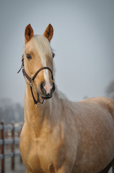 Zum Verkauf steht eine äußerst charmante und sportlich veranlagte 5-jährige Palominostute mit auffallend harmonischem Exterieur. Sie entstammt der leistungsstarken Kombination Diamond Touch NRW x Dressman, was sich in ihrer hervorragenden Rittigkeit und ihrem Ausdruck widerspiegelt. Ausbildungsstand: • Dressur: Sicher auf L-Niveau, mit sehr gutem Takt, natürlicher Bergauftendenz und drei durchweg elastischen, raumgreifenden Grundgangarten. • Springen: Gefestigt auf A-Niveau, mutig, mit solider Technik und guter Übersicht am Sprung. Im täglichen Umgang zeigt sich die Stute stets freundlich, aufmerksam und leicht zu händeln. Unter dem Sattel arbeitet sie motiviert, konzentriert und zuverlässig mit. Auch im Gelände bleibt sie entspannt und unerschrocken. Dank ihrer sportlichen Perspektive, ihrer eleganten Erscheinung und ihres ausgeglichenen Charakters eignet sich die Stute besonders für ambitionierte Jugendliche sowie kleinere Erwachsene, die ein qualitätsvolles und vielseitig talentiertes Sportpony suchen.
