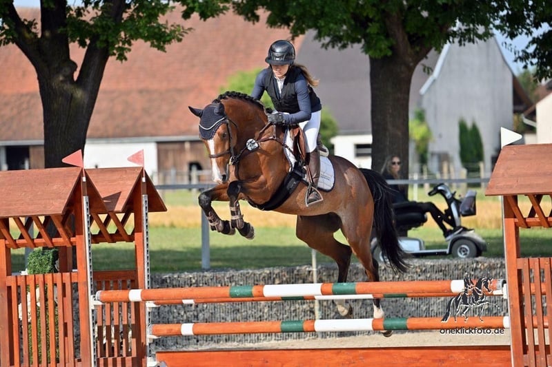 Beautiful 5-year-old mare – sweet, people-oriented, and already won in show jumping L For sale is an exceptionally charming and easy-going 5-year-old mare, who impresses not only with her lovable nature but also with her impressive sporting achievements. She is very gentle, highly people-oriented, and shows herself to be completely straightforward and clear-headed in daily handling. Whether grooming, shoeing, or loading – she handles everything calmly and is a true pleasure to work with every day. Under saddle, she is rideable, eager to perform, and always focused. Over fences, she demonstrates a great attitude, good awareness, and enough talent for higher levels. She has already won in show jumping L and is confidently on her way toward M level, where she will also perform effortlessly. A wonderful young prospect for ambitious riders seeking a reliable, motivated, and athletically talented horse. Please contact me if interested or for further questions.