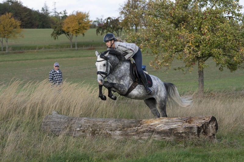 Springpony bis 115 cm platziert Da meine Tochter lieber Großpferde reitet, bieten wir im Auftrag des Züchters eine sympathische 2018 geborene Ponystute an. Sie ist eingetragen mit 1,46 m und Springen bis L gegen Großpferde platziert, wo ihre Grenze aber noch lange nicht erreicht ist. Sie hatte 4jährig erst ein Fohlen und ist dann angeritten worden. Im Parcours ist sie mit Go ausgestattet, will aber trotzdem geritten werden und ist daher nicht für die „kleinsten“ Reiter geeignet. Im Umgang und bei der täglichen Arbeit ist sie brav und geht auch artig und gern allein und in der Gruppe ins Gelände. Reiten ohne Sattel und dergleichen kennt sie auch. Sie kommt direkt vom Züchter, hat aber keine eingetragene Abstammung. Der Vater war ein Nachkomme des Colestus und, bevor er in die USA verkauft wurde, bis Springpferde L platziert, die Mutter eine Ponystute, ebenfalls ohne Abstammung und bis A** im Springen platziert und Seriensiegerin in E Springen (sie kann auch bei uns besichtigt werden). Eine Besichtigung und Probereiten ist nach Absprache möglich.