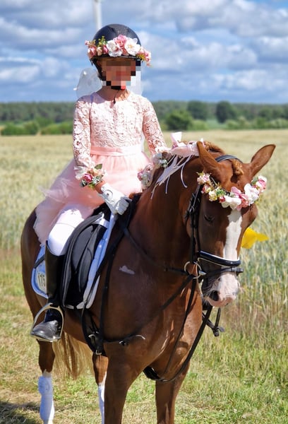 Z żalem sprzedajemy naszą 8-letnią niemiecką kucykową klacz sportową od Dance Star AT, ponieważ nasza córka niestety za bardzo urosła. „Fienchen” jest spokojna i godna zaufania w obsłudze. Odniosła sukcesy od klasy zerowej do klasy E (skoki przez przeszkody) i podarowała naszej córce wiele pucharów. Zawsze wykazuje dużą motywację – zarówno w hali, na placu treningowym, podczas zawodów, jak i na terenie. Idealnie nadaje się jako kucyk dziecięcy dla ambitnego młodego jeźdźca lub jako koń rekreacyjny dla całej rodziny. Przyzwyczajona do czyszczenia podkuwek i załadunku, regularnie szczepiona i odrobaczana. Sprzedaż tylko w najlepsze ręce. Brak sprzedaży dla dealerów lub placówek szkoleniowych. W przypadku zainteresowania lub dodatkowych pytań prosimy o kontakt telefoniczny. 0160 96460876