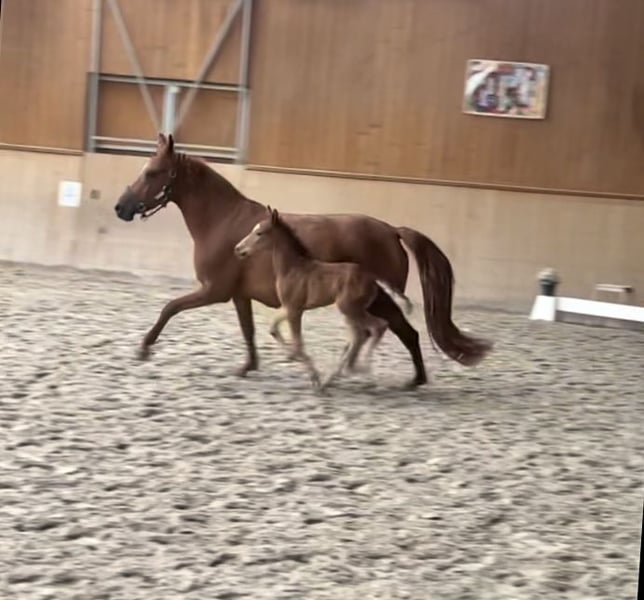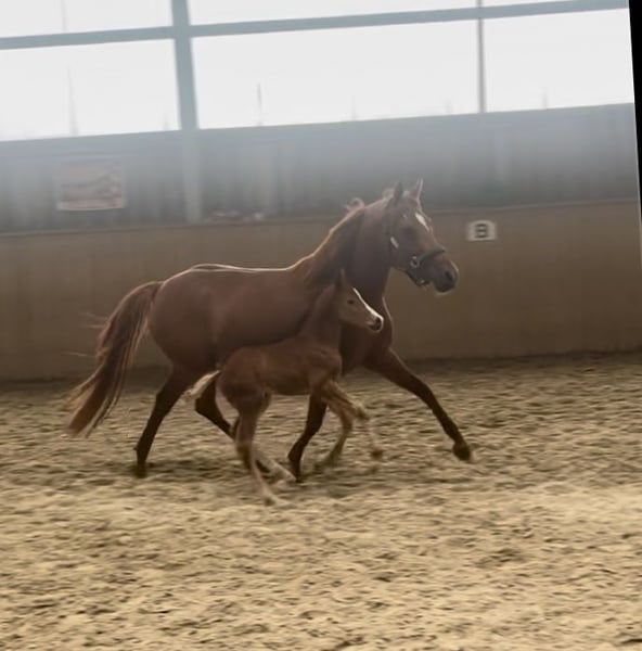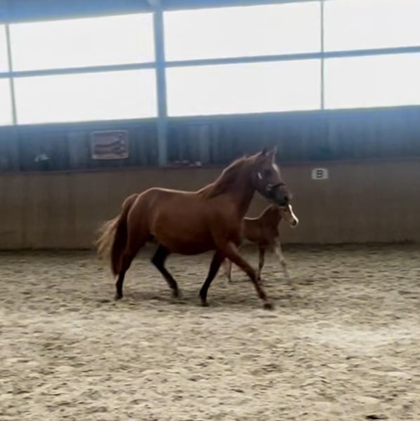 Verkaufe meine Reitpony Stute als Zuchtstute mit allerbester Abstammung! Glamour Girl von Golden Grey NRW x Dimension AT in schicker Dunkelfuchsfarbe, ist 2018 geboren und hat ein Stockmass von 141 cm. Sie ist die Halbschwester des Bundeschampion 2024 und Vizebundeschampion 2025 "DSP Goldschatz". Auch ihre Mutter, die Staatsprämienstute Diva Crema war Finalistin auf dem Bundeschampionat 2016. Aufgrund ihrer Größe haben wir sie nur eingeritten und danach ist sie nur zur Zucht eingesetzt worden. Im Umgang und beim Hufschmied ist sie sehr brav und lieb. Sie hatte bereits 2 Fohlen von FS Next Diamond in 2023 und 2024, beide Fohlen Charakterlich einwandfrei und super von der Größe. Derzeit ist sie nicht tragend. Leider muss ich sie aus Bestandsreduzierung abgeben! Sie wird nur in gute Hände und nur zur Zucht abgegeben!
