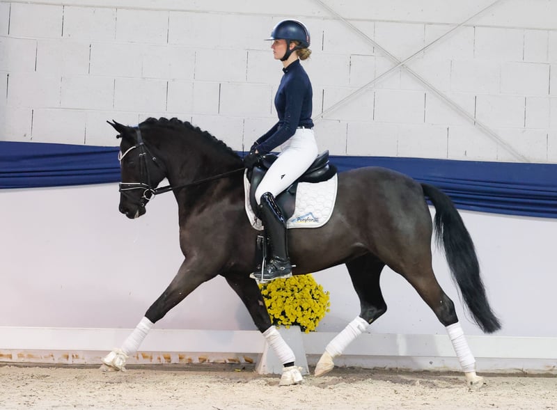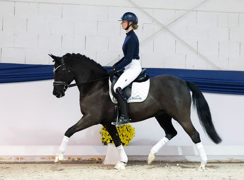 In unserer Kollektion stehen streng selektierte Reitponys f�r alle Anspr�che: Ausbildungs-, Zucht- und Kinderponys Hier gelangen Sie zur Gesamtkollektion: https://ponyforum.auction Black is beautiful – es passt auch dieses Mal wieder! Black Velvet ist eine neunjährige Rappstute in brillanter Aufmachung. Wunderschöne Ponytypwerte mit einem mächtigen Halsaufsatz prägen den Look dieser Stute. Die Tochter des Körungssiegers Hilkens Black Delight war in den letzten Jahren in der Zucht aktiv, hier stellte sie bereits prämierte Nachkommen. Der Ausbildungsstand der Stute unter dem Sattel ist daher mit Jungpferdeniveau zu beschreiben, Black Velvet eignet sich also (noch) nicht für jüngere oder unerfahrene Reiter. Sie ist eine engagiert mitarbeitende Stute, die unter dem Sattel konzentriert bei der Sache ist und Spaß an neuen Aufgabenstellungen hat. Velvet macht im Training bei uns Riesenfortschritte und unsere Reiter mögen ihre ambitionierte Einstelltung super gerne! Sie wird immer cooler und gelassener und bei weiterer Ausbildung können noch viele Talente in diesem Pony geweckt werden. Direkt vom Züchter.