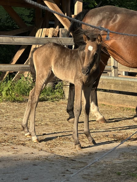Zum Verkauf steht eine vielversprechendes Deutsche Reitpony Stutefohlen, geboren im Jahr 2025. Dieses elegante Stutfohlen besticht durch ihre 3 guten GGA und ihr harmonisches Exterieur sowie einem Traumcharakter. Aus der Mutterstute gibt es bereits einen gekörten Sohn welcher nun erfolgreich in England mit einem 9-jährigen Mädchen erfolgreich unterwegs ist. Vater Gold Garant lässt sowohl in der Bewegungsqualität als auch im Exterieur keine Wünsche offen. Wird direkt aus dem Züchterhaus verkauft und kann ab November in ihr neues Zuhause umziehen.