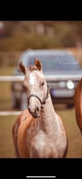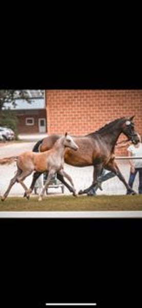 Zum Verkauf steht hier ein auf Leistung gezogenes Stutfohlen vom Bundeschampion Little Milton aus einer St.Pr.St. von Golden Rock x Viscount. Das Fohlen selbst ist mit der Westfälischen Goldprämie ausgezeichnet und lässt einfach keine Wünsche offen. Wunderschön, sehr cool, mit bestem Charakter, korrektem Körper und Fundament kommt sie daher. Absolut doppeltveranlagt überzeugt sie schon jetzt mit drei sehr guten GGA, einem kraftvollen Bewegungsablauf und einer enormen Balance. Voraussichtlich wird sie das Endmaß erreichen. Bei ernsthaftem Interesse verschicke ich gerne weitere Videos und Fotos.