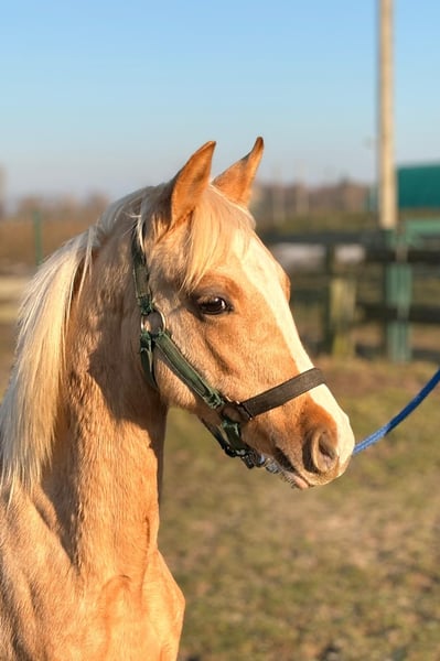 Der bildhübsche Deutsche Reitpony Hengst "Der Kleine Donner", geboren am 25.04.2025, besticht durch seine tolle Palomino-Farbe und sein sehr korrektes Exterieur. Mit einem geschätzten Endmaß von ca. 145 cm ist er ein echter Eyecatcher und überzeugt durch Typ und Ausstrahlung. Der Jährling besitzt Papiere vom Verband der Pferdezüchter Mecklenburg-Vorpommern e.V. Der Kleine Donner ist gesund, regelmäßig entwurmt und geimpft, gechipt und kennt sowohl Hufschmied als auch Tierarzt. Er ist halfterführig und mit dem Fohlen-ABC vertraut. Aufgewachsen unter besten Bedingungen im Herdenverband, kennt er sowohl Boxenhaltung mit täglichem Weidegang als auch die Herdenhaltung. Charakterlich zeigt er sich lieb, freundlich und umgänglich, aktuell noch etwas schüchtern, dabei aber brav, aufmerksam, sehr lernwillig und motiviert. Der Hengst besitzt drei sehr gute Grundgangarten und eine hochwertige, dressurbetonte Abstammung. Sein Vater (Der Kleine Leonardo) ist gekört und wird erfolgreich im Dressursport eingesetzt. Durch seine vielseitigen Anlagen eignet sich Der Kleine Donner hervorragend als zukünftiges Turnier- und Freizeitpferd. Er wird direkt vom Züchter abgegeben und sucht ein liebevolles, förderndes Zuhause.
