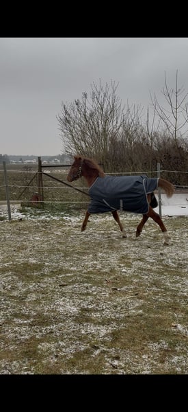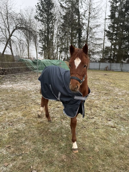 Destino‘s Don‘t worry be Happy, kurz um Happy Dieser wunderschöne, charmante, nervenstarke und Neugierde junge Mann in dunklere Fuchsjacke darf ab sofort ausziehen und seine neuen Besitzer um den Finger wickeln. Er ist absolut Menschen bezogen und kennt alles was ein kleiner Ponymann kennen sollte. Er steht tagsüber mit einem Wallach zusammen und ist Nachts in der Box. Am 19.07.25 waren wir mit ihm in Groß Viegeln, wo er als Elite Fohlen prämiert wurde. Auch für Züchter sehr interessant. Video gerne auf Anfrage. Geboren am 27.05.2025 Abstammung: V.: Elitehengst Destino R MV.: Classic Dancer lll Mutter: 1,47 Vater : 1,47 Wird wahrscheinlich ein wenig größer Winterpreis bis Ende März. Bei weiteren Fragen gerne schreiben