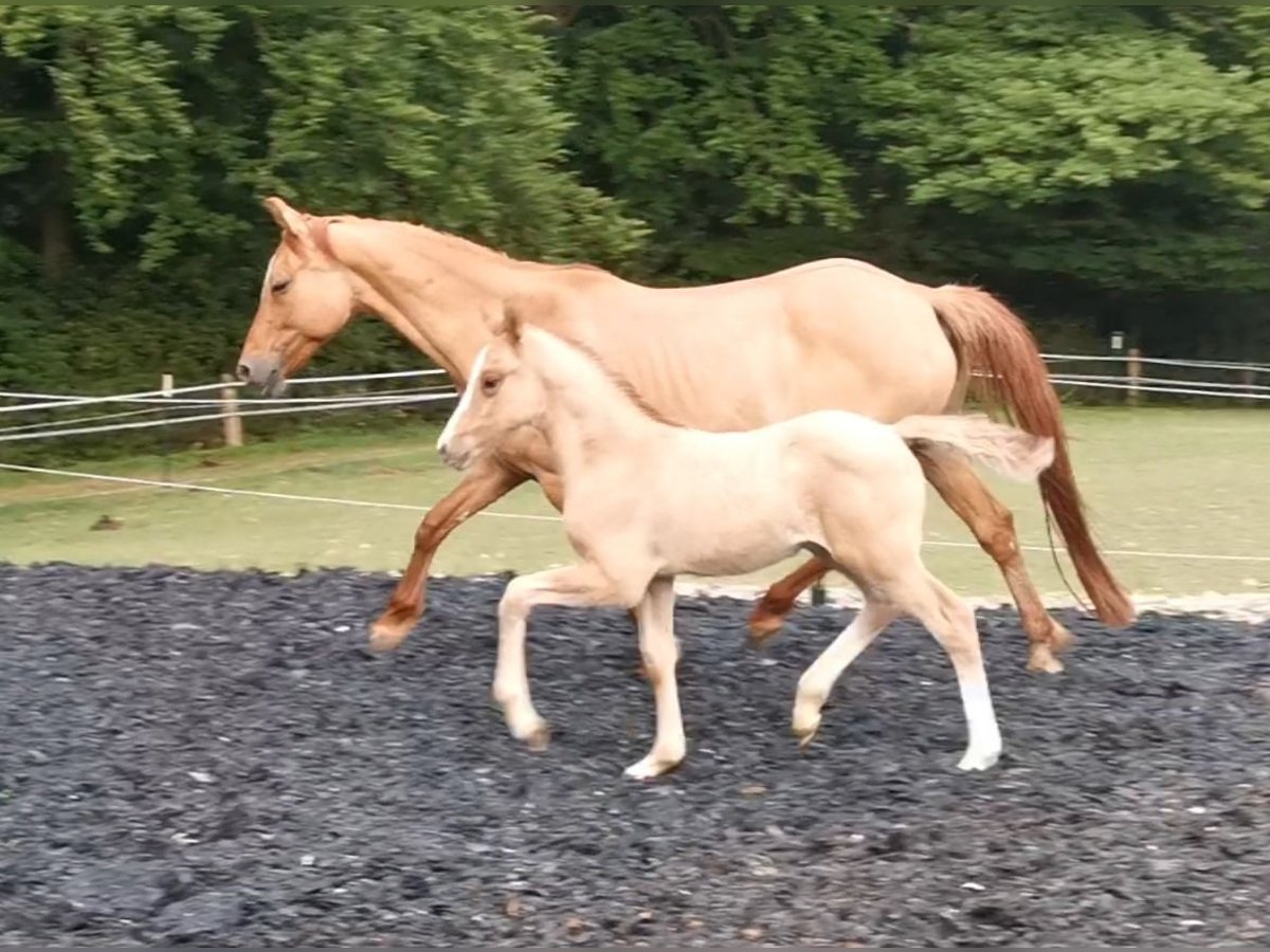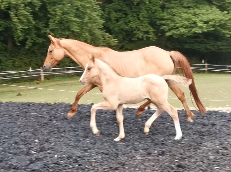 Hengstjährling sucht noch das passende Zuhause 🏠 Der kleine Noble Cream wurde am 15.04.2025 im Offenstall geboren. Er stammt ab von Noble Dance NRW x Dimension AT x Champion de Luxe und ist ein Fuchsfalbe mit breiter Blesse und zwei weißen Stiefeln hinten. Seine Mutter, StPrSt. Diva Crema war 4 jährig Bundeschampionats Finalteilnehmerin und legte ihre Stutenleistungsprüfung mit der Endnote 8,46 ab. Sie ist ebenfalls die Mutter von DSP Goldschatz, der unter Michele Schulmerig Bundeschampion 2024 und Vizebundeschampion 2025 wurde. Er wurde auf der Fohlenschau prämiert und war zum Fohlenchampionat in Wickrath zugelassen. Er kennt das Fohlen ABC, ist geimpft, entwurmt und natürlich dem Hufschmied vorgestellt. Er ist bisher in einem Offenstall mit anderen Fohlen und Zuchtstuten aufgewachsen. Ich denke, dass hier ein tolles zukünftiges Sportpony heran wächst. Ich kann ihn mir aber ebenso gut als zukünftiges Kinderpony vorstellen. Die Mutter gibt ihren Kindern viel Rittigkeit und Einstellung mit. Er kann auf Wunsch auch hier noch kastriert werden und dann als Wallach ausziehen. Bei Interesse gern eine Nachricht schreiben.