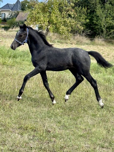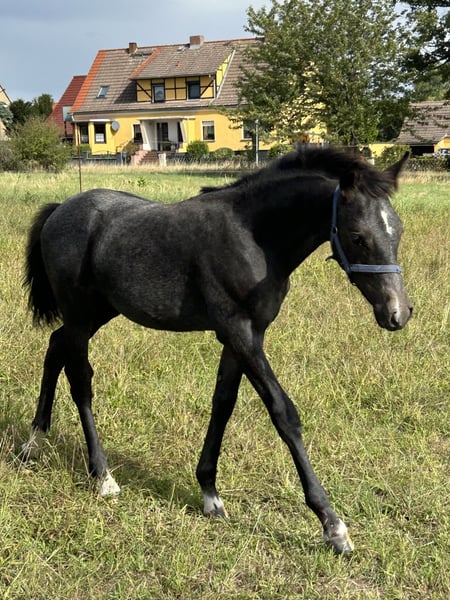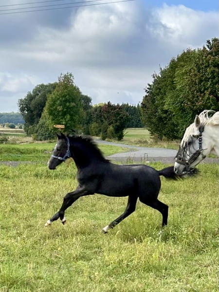 Reitponyhengst mit Spitzenpedigree, Charakter und guten GGA Vater: Der Zauberlehrling Muttervater: Can Dance Dieser elegante und vielversprechende deutsche Reitponyhengst wurde im Jahr 2025 geboren und besticht durch seine beeindruckende Erscheinung und seine Umgänglichkeit . Er bringt alles mit, worauf eine spätere Ausbildung gut aufbauen kann. (Gesundheit, Charakter, sehr gute GGA und Leistungsblut!) Seine Mutter war 2019 auf dem Endring der Elitestutenschau zu den Landtagen Nord in Wüsting. Sein Vater ist einer der angesagtesten Hengste der Gegenwart. Nach dem Reservesieg der Wesrfälischen Körung 2023 folgte im letzten Jahr der Titel des Westfalenchampions. Typ, Interieur und Bewgungsqualität sind von absoluter Ausnahmequaöität und von einem der bedeutendsten Stutenstämme Westfalens abgesichert. Mit der überragenden Endnote von 8,61 gewinnt der Zauberlehrling nach dem Westfalenchampionat auch seine HLP in Münster Handorf. Die Bundeschampionatstitel der engsten Verwandten sprechen Bände. Weitere Vertreter dieser Familie sind in den Dressurklassen M und S siegreich. Dutton beherrscht das Fohlen 1x1 perfekt und lässt sich auch von vorbeifahrenden Autos auf der Straße nicht aus der Ruhe bringen. Mit diesem Jährling investieren Sie in die Zukunft Der Hengst vereint die typischen Reitpony-Qualitäten mit einem angenehmen Charakter und viel Potenzial für die Zukunft. Seine elegante Erscheinung und sein ausgeglichenes Wesen machen ihn zu einem idealen Partner für ambitionierte Reiter, die Wert auf Qualität und Leistungsbereitschaft Bei Interesse oder für weitere Informationen freuen wir uns auf Ihre Kontaktaufnahme. Überzeugen Sie sich vor Ort von der Qualität des Ponys!