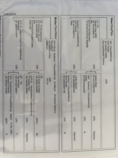 Ich biete aus familiären Gründen einen wunderschönen Reitponyhengst an. RM Game of Thrones hat nicht umsonst den Namen erhalten Er ist ein Ausnahmepony durch und durch . Freie Schulter , tolles Vorderbein und eine starke Hinterhand zeichnen sein Gangbild aus . Sein Aussehen lässt keine Wünsche übrig Er ist dem Menschen immer zugewandt kennt den Schmied , geht toll auf den LkW und lässt sich brav führen . Er entstammt einem hocherfolgreichen Stamm und ist der letzte Hengst der Hengstmutter und Staatsprämienstute Rapsody K. Zu seinen Halbgeschwistern von der Mutterlinie gehören u.a. der Bundeschampion RM Golden Pleasure , Vize Bundeschampion Tackmanns Dimensional oder dem erfolgreichen Tackmanns D-Jay . Außerdem ist eine seiner Halbschwestern die in Australien hocherfolgreiche RM Raspberry