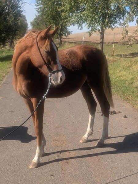 For sale is a promising German Riding Pony stallion (Arabian cross), born in 2024. Standing at 14.2 hh and featuring a striking chestnut coat, he is truly eye-catching. This talented stallion shows great potential in show jumping and is ideal for ambitious riders seeking a versatile partner. He is well-socialized. His friendly nature and eagerness to learn make him an excellent companion. Please feel free to contact me for more information or if you are interested. Phone: +49 152 52194659