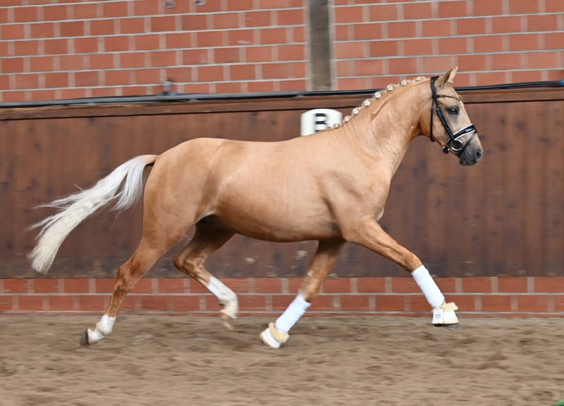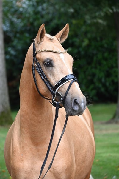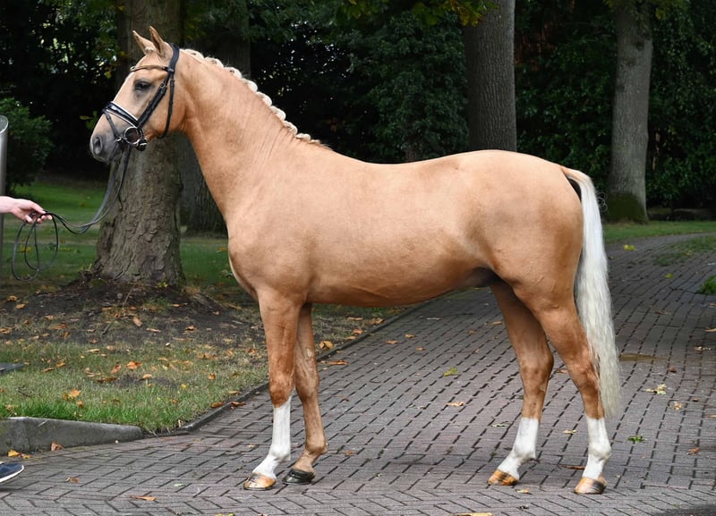 Hier geht's zur Kollektion und Online-Registrierung: https://auktion.pzvbw.de/auctions MwSt. 0 % Bewegungsopulenter Sohn des D-Gold AT aus der Vollschwester zum Bundeschampion Glückskeks. Opulent son of D-Gold AT out of the full sister of Bundeschampion Glückskeks. M: Melli’s Jellymay v. Melli’s Darmani (Dr. A) MM: gek. Sohn Melli’s Glückskeks v. Golden West (Bundeschampion 5j. Dressurponys 2022, Dr. L), Melli’s Jamy v. Dornik B (Dr. L), Melli’s Jakumi de Luxe v. FS Champion de Luxe (Dr. L) MMM: Dinero v. Dornik (Dr. M, 35facher L-Dressur Sieger), Dornik v. Dornik B (Dr. L), Don Rubio v. Don’t Worry (Dpf. L)