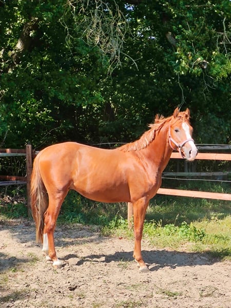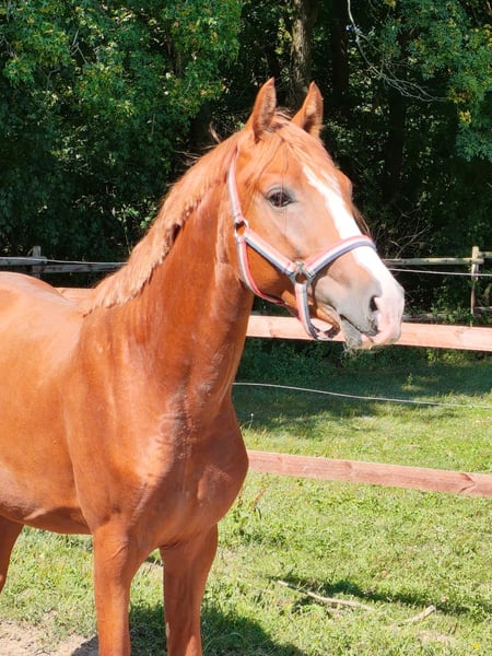 Hengstanwärter mit absoluten top Bewegungen und einem makellosen Exterieur. Er hat die optimale Größe von 145 stckm und wird sicherlich das Endmass erreichen.