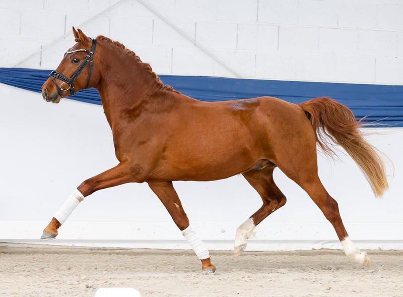 In unserer Kollektion stehen streng selektierte Youngster f�r alle Anspr�che: Ausbildungs-, Zucht- und Kinderponys Hier gelangen Sie zur Gesamtkollektion: https://ponyforum.auction Dieser dreijährige Fuchshengst bringt das ganz große Gesamtpaket aus Qualität und abgesichertem Pedigree mit! Dantes Peak präsentiert sich im ausdrucksstarken Hengstmodus – obwohl er tatsächlich weder in Körvorbereitung noch in anderem Training war. Er kommt „grün“ aus der Herdenaufzucht, hat aber sofort den Schalter umgelegt und ist direkt ein aufmerksames und arbeitswilliges Pony umgeswitcht, das gespannt auf neue Aufgaben wartet! Nicht nur sein hinreichend bekannter Vater Dance Star AT NRW, seines Zeichens Körungssieger; HLP- und Bundeschampion, sondern auch sein wertvoller Mutterstamm machen diesen Youngster hochinteressant für die Ausbildung unter dem Dressursattel! So ist Dante Peaks Mutter etwa eine Vollschwester zum Europameister Da Capo B, sie stammt ab von Dornik B – Golden Dancer. Ganz viel mehr hochkarätiges und seit Generationen erfolgreiches Dressurblut in einem Pony vereint geht nicht! Direkt vom Züchter.