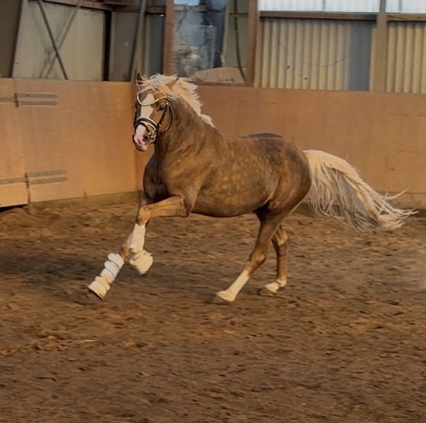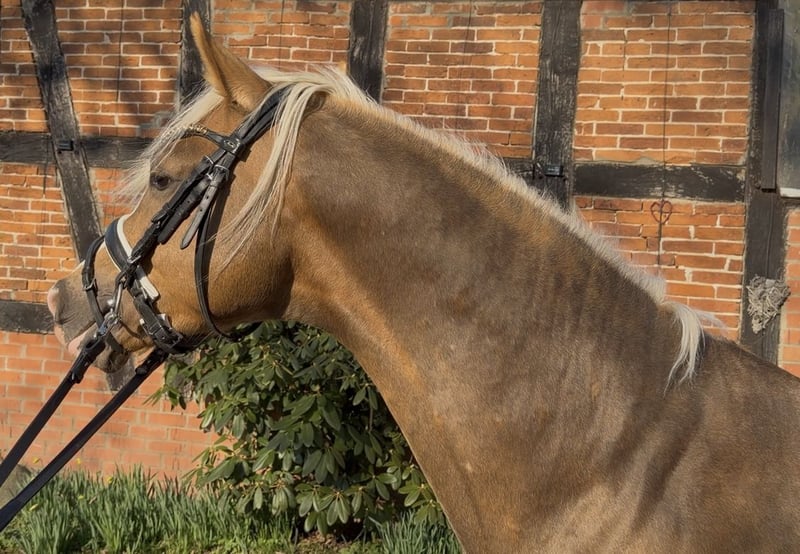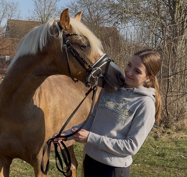 From our treasure chest, today this gem shines through: Buchenhof’s Corleon 🥰🧡 My coat color is wonderful — sometimes golden, sometimes with a silvery sheen. My name is Corleon, and I love my life. I am very relaxed and always have a lot of fun with everything. On the pasture (which is huge), I often wandered around alone — I found that really cool. I think everything that happens to me is fine — Lennard, my trainer, says I am the sweetest pony in the world. I love children, and I am already being “worked with” by teenagers — meaning I am currently being lunged, doing groundwork, free jumping, and first exercises under saddle (walk and trot on the longe). Jumping is a lot of fun for me — it’s in my genes. My grandmother is a state premium mare and received a 9.5 in jumping during her performance test. My mother, Hermine, is also a premium mare and a real sporthorse. After having me and my brother, she returned to sport in Hesse and is successful again. My sire, Cashcode, is a dressage stallion with a lot of jumping talent — so my future can only be bright. My breeder says: “Corleon is the king of beauty — I’m doing my best 😍🙏💪😉.” Well, soon I’ll start riding — I’m curious about that. In any case, I’m looking forward to whatever comes my way. It would be the best if I could go to a family with children — then I could cuddle a lot and have fun. In sport, I’d be up for anything — I could be good at eventing, hunter classes, or equitation. Let’s go! I am ready — if you want to get to know me 😄🫶 I am three years old, 146 cm tall, and registered in Hanover. And I am perfectly healthy, too. Maybe see you soon, Your Leo 💓